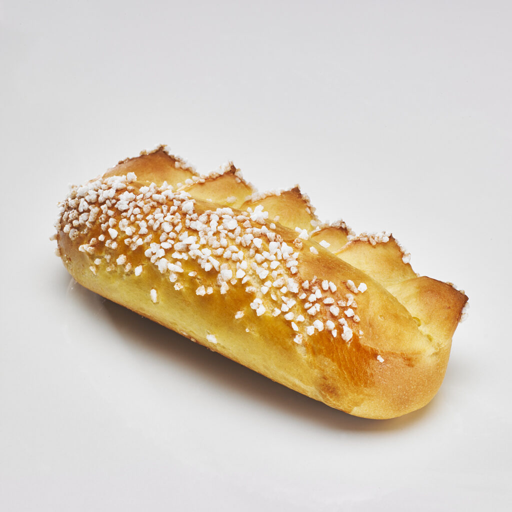 Une couronne briochée pur beurre, moelleuse et parfumée, parsemée de grains de sucre.