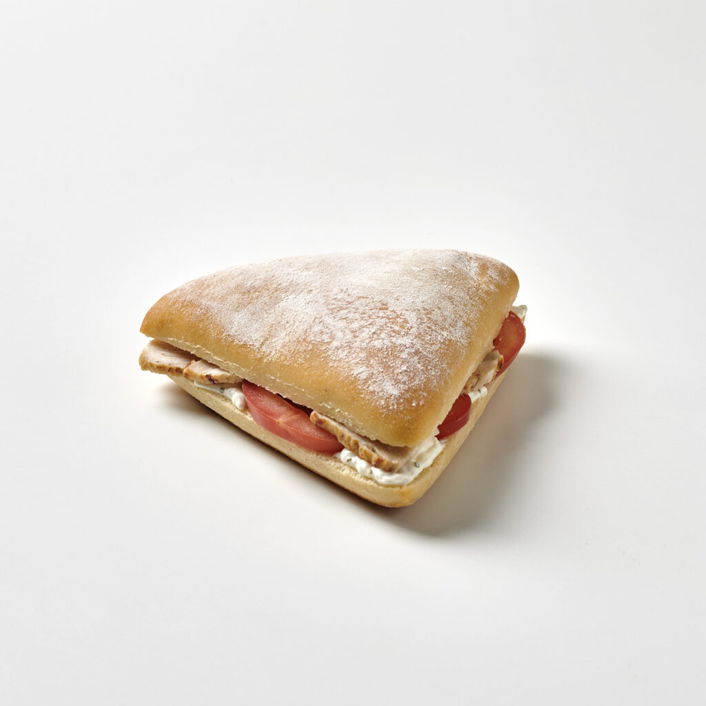 Une déjeunette pain de mie moelleuse, de la batavia, des émincés de poulet, de la sauce curry et des lanières de poivrons !