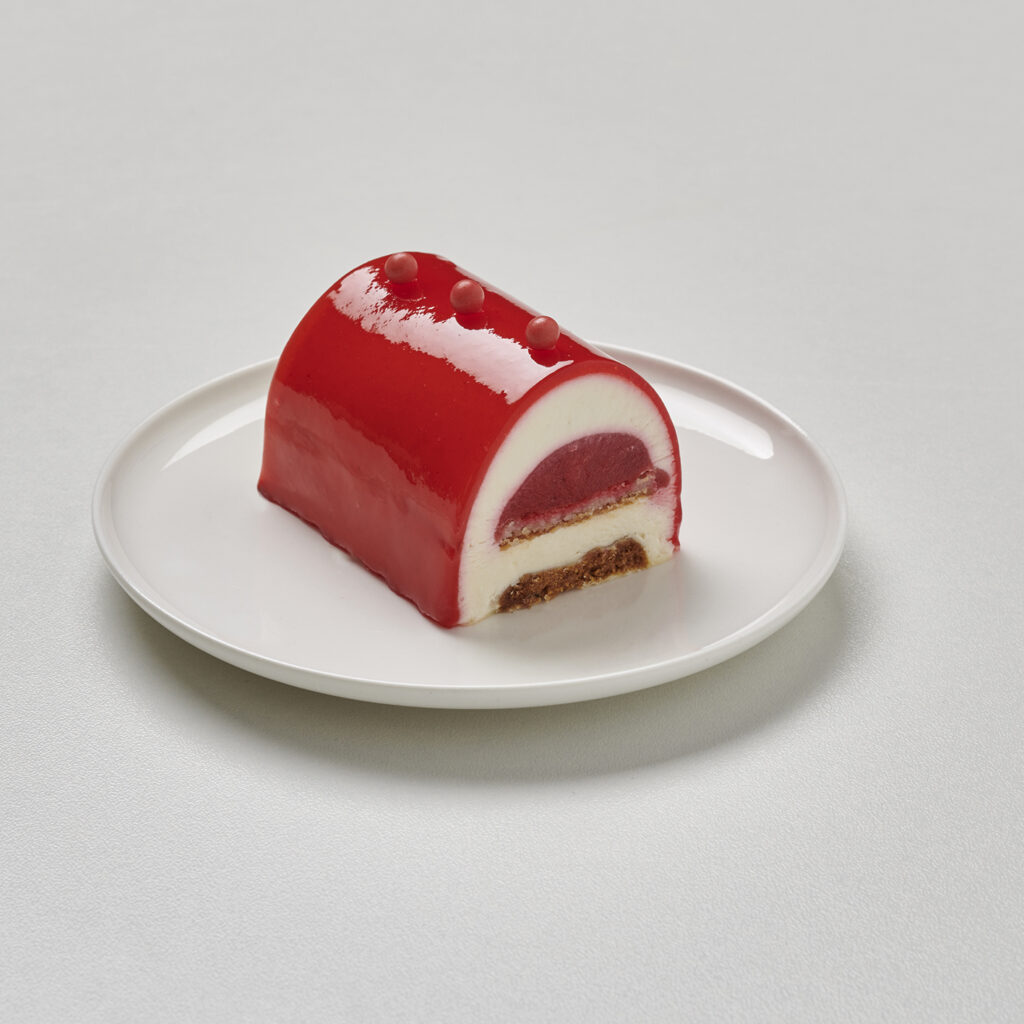 L’union parfaite d’une mousse cheesecake légère, d’un coeur framboise intense et d’un biscuit spéculoos… Une bûche aux couleurs de Noël e...