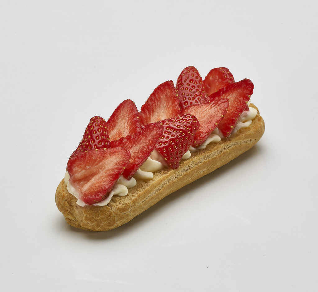 Un éclair associant une mousse légère au Mascarpone et un cœur de fruits rouges, le tout recouvert de frais...
